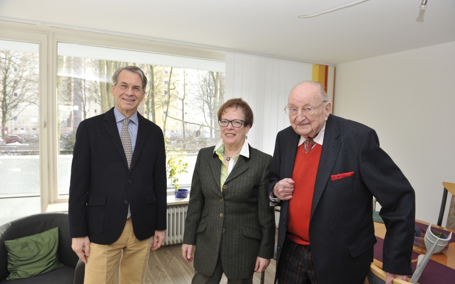 Foto: Vorsitzender des Stiftungskuratoriums Christian Dierig (links) bei der Wohnungsübergabe mit Edith und Hans-Dieter Ernicke (Fred Schöllhorn)